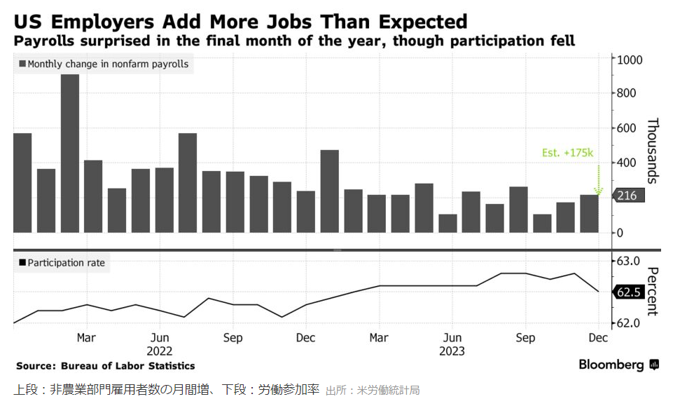 12月米雇用統計は、マーケットに広がる3月利下げ観測を支持する内容にはなりませんでした。依然として雇用者数が着実に増え、失業率は抑制され、強めの賃金上昇圧力が維持されていることが確認されています。