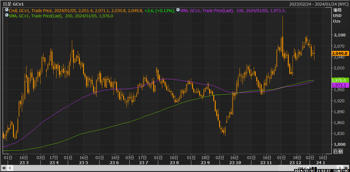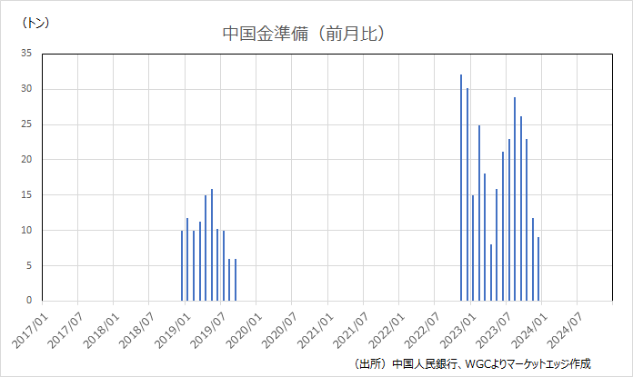 6~10月が20トン超だったのに対して、11月が11.82トン増、12月が9.02トン増と、ややペースは鈍化しています。金価格高騰の影響でしょうか? それでも、中国が断続的に金準備を増強していることは、金相場に対して強力なポジティブ材料になります。2024年にもこの流れが持ち越されるかが重要な論点になります。